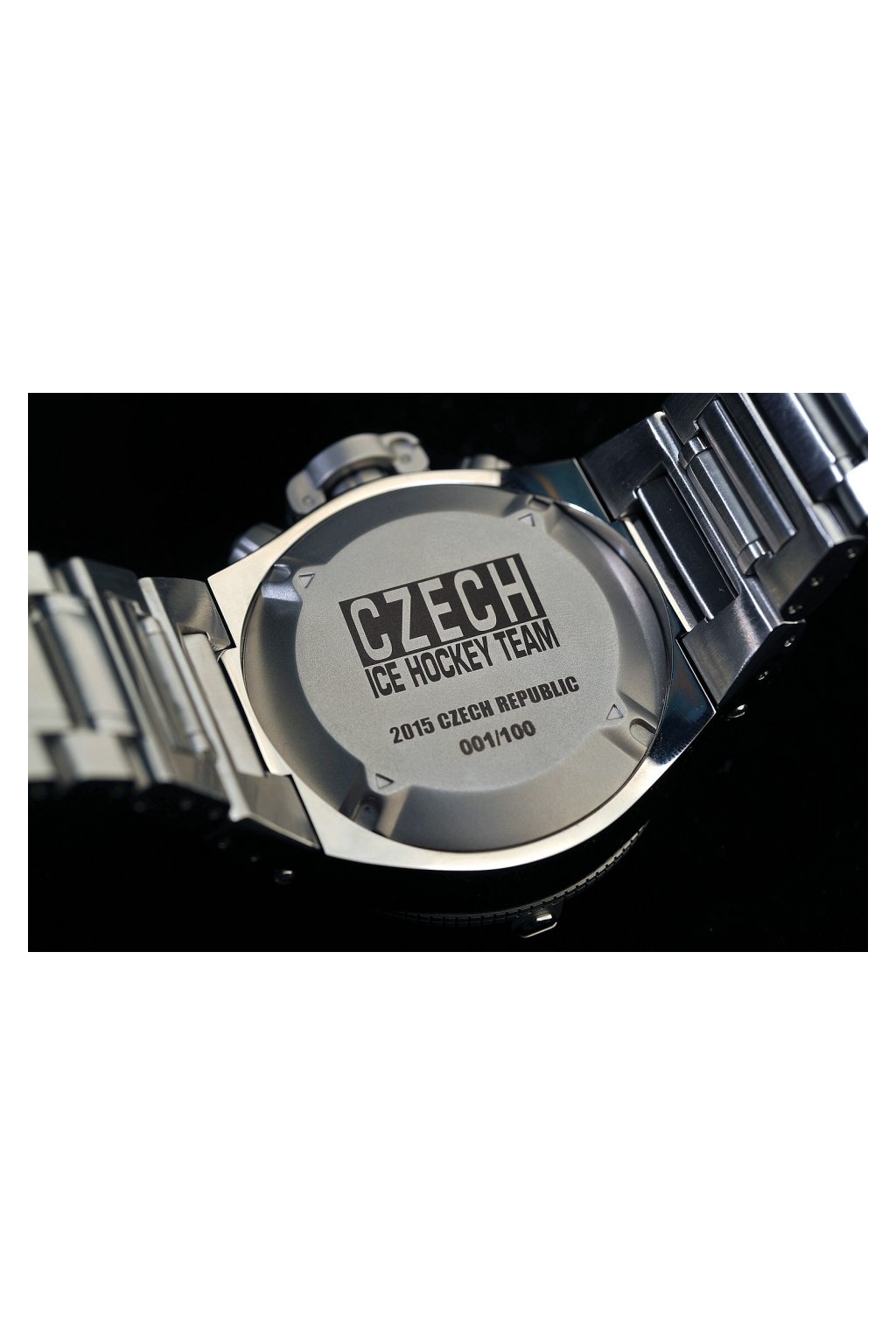 Vzácný kus z limitované série CZECH HOCKEY ICE TEAM s označením 050 / 100. Hodinky jsou věnovány českému hokejovému týmu za jeho výhry na mistrovství světa v letech 1947, 1949, 1972, 1976, 1977, 1985, 1996, 1999, 2000, 2001, 2005 a 2010. Tyto hodinky obdrželi vrcholní funkcionáři, hráči a realizační tým. Celkem bylo rozdáno 92 kusů hodinek a zbylých 8 kusů šlo do prodeje. My vlastníme model 050/ 100 této kolekce a nabízíme ho za bezkonkurenční cenu!
